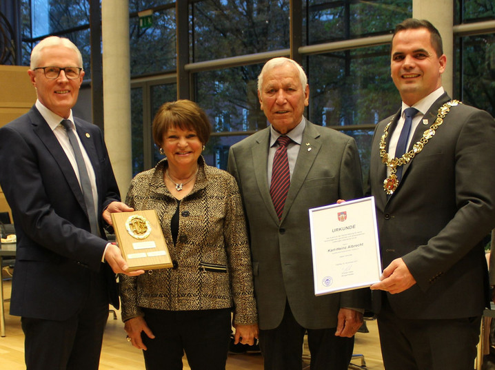Karl-Heinz Albrecht ist 90 Jahre alt und hat in diesem Jahr als erster Sportler Niedersachsens zum 70. Mal das Deutsche Sportabzeichen (DSA) abgelegt. Seine außergewöhnliche Leistung wurde am Freitag im Vechtaer Rathaus in einer Feierstunde gewürdigt, an der auch Reinhard Rawe, der Vorstandsvorsitzende des LandesSportBundes (LSB) Niedersachsen, teilnahm. Alle Redner sprachen von Karl-Heinz Albrecht, der sich nun auf die Gymnastik mit seiner Frau Renate und das Nordic Walking konzentrieren will, als Vorbild.