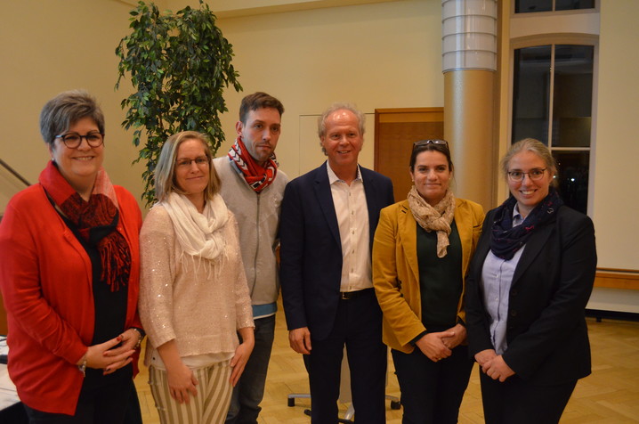 Von links: Sabine Thiele (Stellv. Vorsitzende Organisations- und Vereinsentwicklung), Anke Oertel (Stellv. Vorsitzende Bildung), Tobias Lüddecke (Vorsitzender der Sportjugend), KSB Vorsitzender Clemens Löcke, Antje Kolbusa (Stellv. Vorsitzende Sportentwicklung) und Stefanie Sudholt (Stellv. für Finanzen). Einstimmig wurde Matthias Giffhorn zum Ehrenmitglied ernannt.