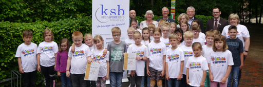 Die Schüler und Lehrer freuten sich gemeinsam mit Vertretern des KreisSportBund Emsland und der Sparkasse Emsland über die Auszeichnung.