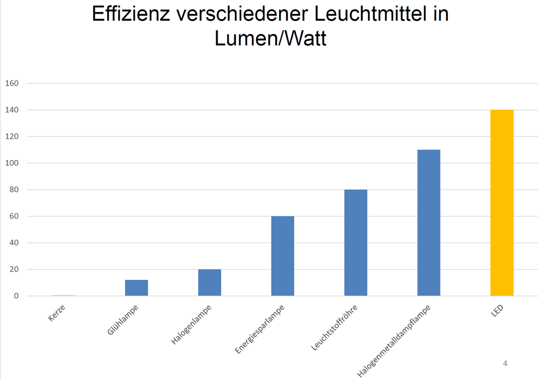Auch bei Flutlichtanlagen lohnt sich der Umstieg auf LED. Durch den Austausch von Halogenmetalldampflampen können bei gleicher Beleuchtungsstärke auf dem Platz ca. 40 – 50 Prozent Energie eingespart werden; mit Dimmung und Teilschaltungen sind sogar über 60 Prozent möglich.